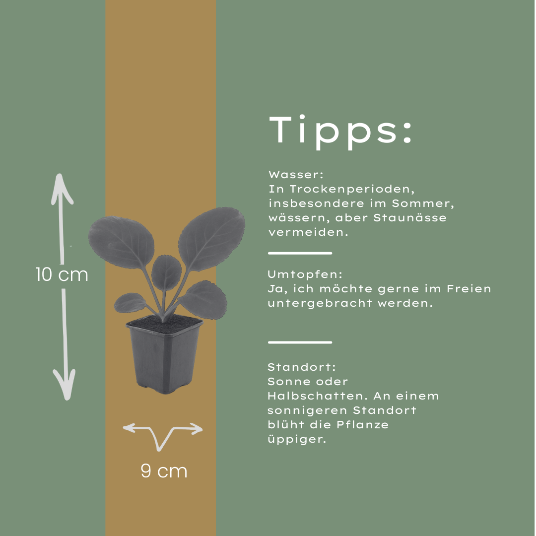 Durch ihre Vielseitigkeit passt diese Staude sowohl in moderne Gartenkonzepte als auch in naturnahe Pflanzungen. Ob als flächiger Strukturgeber, als immergrüner Blickfang oder als dekorative Randbepflanzung – die Schusterblume bringt Stabilität, Farbe und elegante Ruhe in jeden Außenbereich. Die Pflanzen werden im Topf geliefert und können direkt nach Erhalt ausgepflanzt werden.