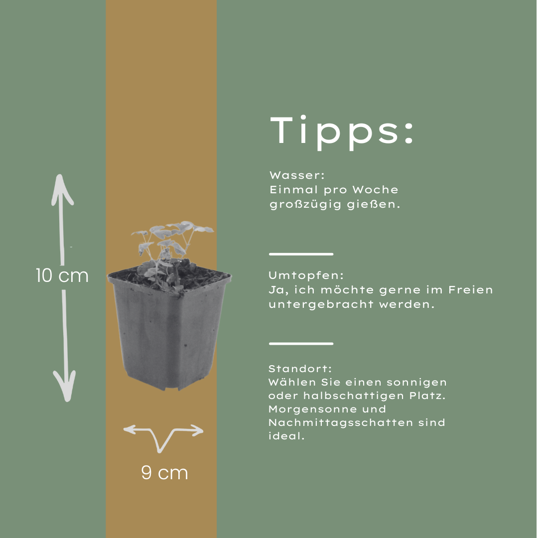 Pflanzen sind lebende Naturprodukte und können in Größe, Farbe und Blütenform leicht von den Abbildungen abweichen. Kleine Unvollkommenheiten sind normal und regenerieren sich in der Regel nach dem Auspflanzen. Die Lieferung erfolgt in recycelbaren Kulturtöpfen direkt aus der Gärtnerei für optimale Frische und Qualität.
