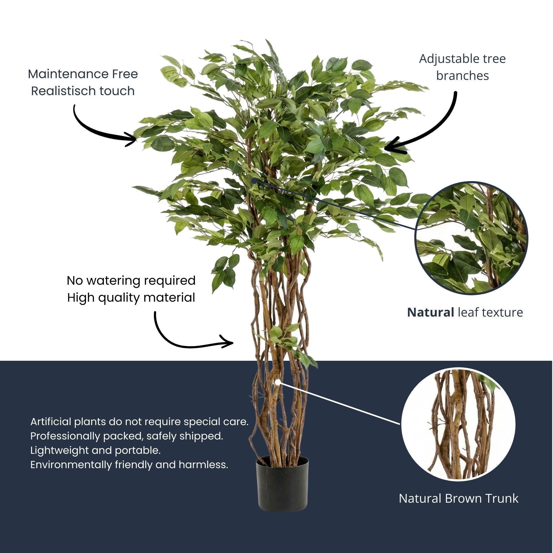 Ficus Liana Kunstbaum – 140cm – Hochwertige künstliche Pflanze mit realistischer Blattstruktur – Pflegefreier Deko Baum für Wohnzimmer Büro & Empfangsbereich