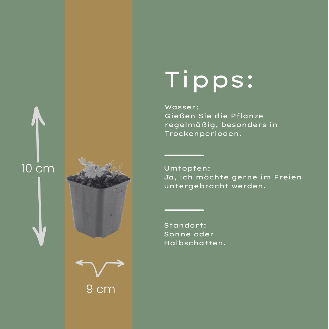 Die Lieferung erfolgt als Großmenge mit 60 Pflanzen im Ø9cm Topf und einer aktuellen Höhe von ca. 10-25cm. Damit lassen sich größere Flächen effizient begrünen und dauerhaft strukturierte Gartenbereiche anlegen. Ob als flächiger Bodendecker, farbintensives Blütenhighlight oder stabile Beetbegrenzung – dieser Storchschnabel überzeugt durch Blühfreude, Pflegeleichtigkeit und langlebige Gartenqualität.
