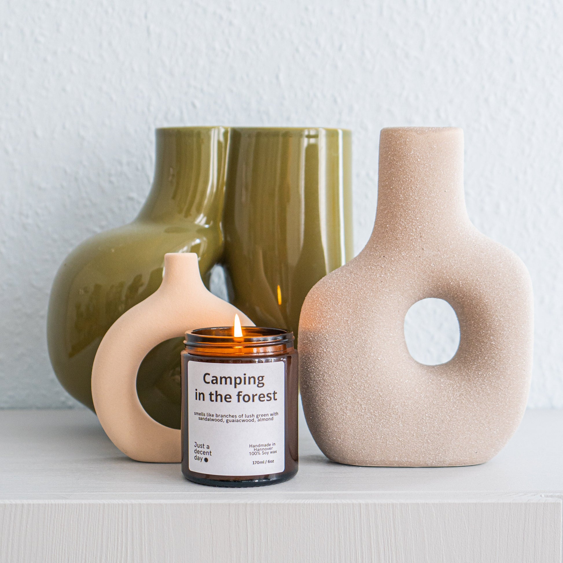 Duftkerze Camping in the Forest – Waldduft Kerze aus Sojawachs – 170ml – Warm & holzig mit Sandelholz Guajak & Mandel – Aromakerze im Glas