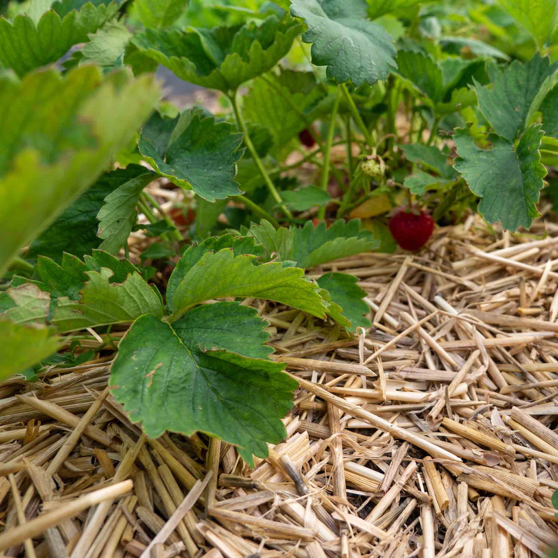 Die Mulchschicht wirkt außerdem als natürliche Barriere gegen Unkraut. Sie erschwert das Keimen von Unkrautsamen und reduziert den Pflegeaufwand im Beet erheblich. Gleichzeitig schützt das Strohmulch empfindliche Früchte wie Erdbeeren vor Bodenkontakt, Fäulnis und Verschmutzung.